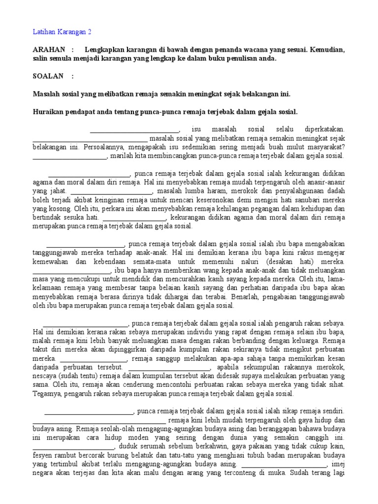 Latihan Karangan Gejala Sosial Remaja Pdf